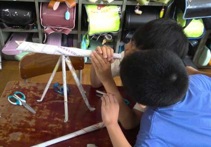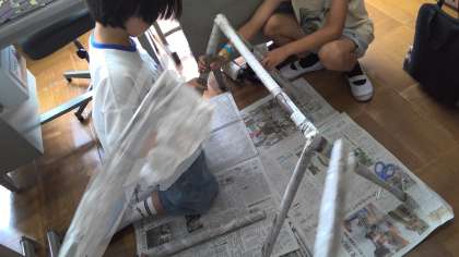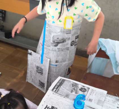 図工の「しんぶんしとなかよし」の学習で,新聞紙を使ってできることを考えました。
