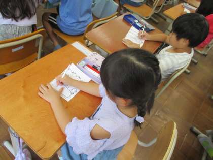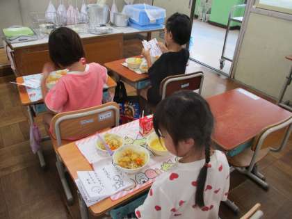 自分だけの「まほうのじゅもん」を考え、「まほうのたべかた」をためしながら給食を食べていました。「あしぴったん、せなかぴん!」も上手でした。