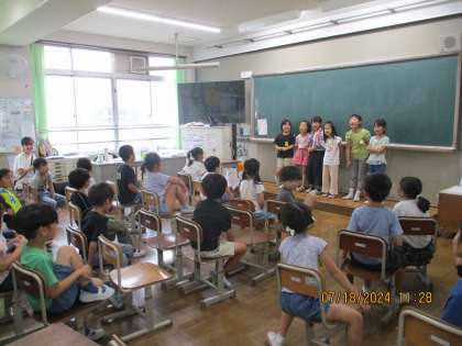 18日金曜日で1学期が終わりました。1学期の間,子どもたちは勉強に遊びにと,学校生活を満喫して頑張ってくれました。最終日は,通知表をもらい,お誕生日会やお楽しみ会を楽しみ,1学期お世話になったまなびの先生方と交流し,大そうじを頑張りました。最後までしっかりやるべきことを考え,行動出来ていたと思います。夏休み明け,また元気な姿で会えるのを楽しみにしています。1学期,小学校での学習にご協力いただき,ありがとうございました。また2学期からもどうぞよろしくお願い致します。