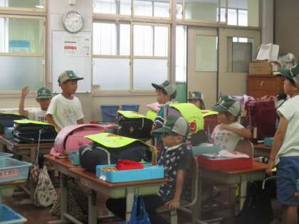一日の素敵を発表しています。自分が頑張ることが出来たこと、友だちが輝いていたことを伝え合います。今日もたくさんの人たちが手を挙げて伝えてくれました。いつもありがとう。これからもお互いを大切にしようね。