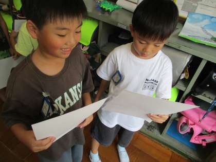頑張ってかいてきた絵日記を見せながら、夏休みの思い出をみんなに伝えました。質問したり感想を伝えたりし、楽しい交流になりました。
