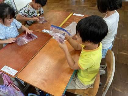 その色水を和紙にしみこませてきれいな模様をつけました。