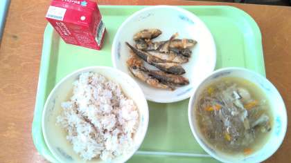 本日のメニューのタイピーエンは、中国から伝わった熊本県の郷土料理です。うずら卵に春雨の入った、具沢山のスープです。小あじのこはくあげもおかわりが止まらず、食缶が空っぽになりました!!ふかリンピックの練習でおなかを空かせた子どもたち。おいしくいただきました!!