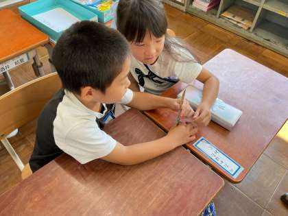 隣の席のお友だちとどっちの鉛筆が長いか比べました。