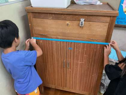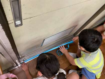 動かすものができないものを比べるときは、紙テープでうつしとってくらべました。