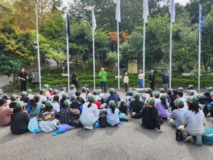 無事に入所ハイクを終えて、本館前で入所式を行いました。