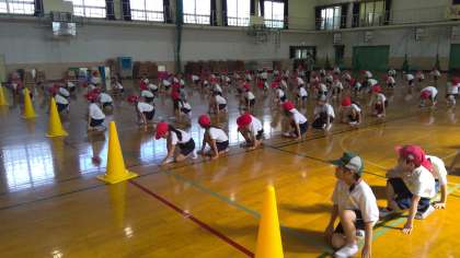 2年生は,「アロハ・エコ・モ・マイ」と「イイじゃん!」でダンスを踊ります。教室では,ダンスの動画を見ながら振り付けを覚え,細かい動きまで丁寧に練習しています。体育館では,隊形移動の練習にも取り組んでいます。本番に向けて,心ひとつに練習頑張ります!