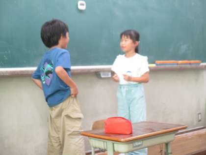 今日の対話はお話作りです。どんなお話をしているのか想像し、お話を広げました。「おさそい」「へんじ」など、相手との会話が続く工夫も見られました。