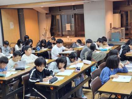 キャンプファイヤーの後は、そのまま研修室という大きな部屋に入り、今日一日をふりかえりました。