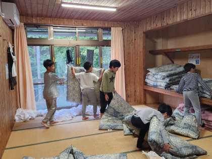 起き出した子は、静かに歯磨きしたり、布団を片付けちりと、動き始めていました。