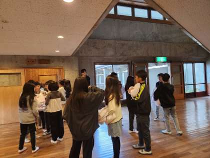 みんなで協力して片付け、班の友だちと合流し、数を確認したら、返却場所に運びます。