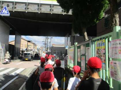 いよいよこんにゃく工場へ!「どんな機械があるのかなー」「どれくらいの広さなのかなー」とわくわくしながら歩いて行きました。