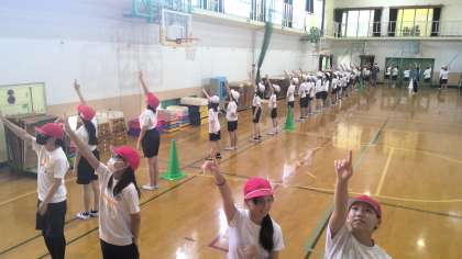 体育館で、最後のパートの動きを確認しました。1曲まるまるあっという間に覚える子どもたちにびっくり!これで全曲通すことができました。