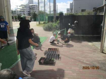 「季節の野菜を育てよう」の学習で、チンゲン菜と玉ねぎの種まきをしました。