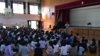 本日,音楽鑑賞会がありました。音楽鑑賞会では,ピアノとバイオリンの演奏を聴きました。トルコ行進曲やルパン三世のテーマ,マンボー!など,様々なジャンルの音楽を,パフォーマンスを交えて演奏してくださりました。皆で一緒に手拍子をしたり,声を出したり,ジャンプをしたりととても盛り上がっていました。音楽や楽器を身近に感じて, 興味を広げていってくれれば,幸いです。