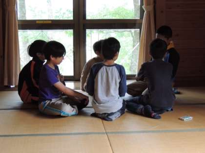 食事の後、午後1時からの活動までの間、部屋でトランプやウノをして遊んでいます。