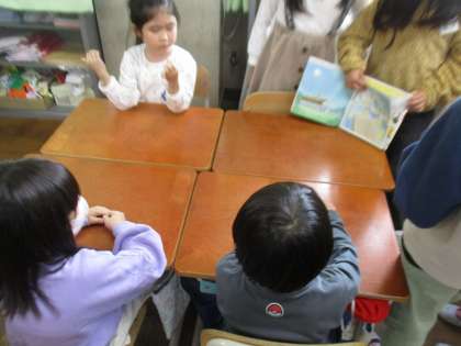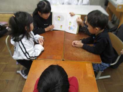 3年生から読み聞かせをしていただきました。色々な本を知ることができるチャンスです。たくさん本を読んでみてほしいと思います。
