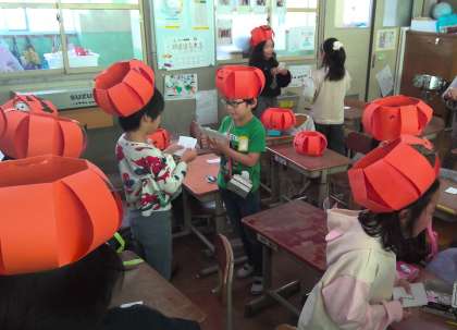 英語の時間に,ハロウィンについて知る学習を行いました。ハロウィンにちなんだ英語の歌を聴いたり,単語を知って声に出して練習してみたりしました。図工の時間に作ったカボチャの帽子とカードケース,ナンバーのカードやお菓子を使い,簡単な英語を使ってゲームもしました。子供たちは,学んだ英語を使ってゲームを楽しんでいました。持ち帰っていただいた作品で,お家でもハロウィンの気分を楽しんでいただけかなと思います。材料の準備等,ありがとうございました