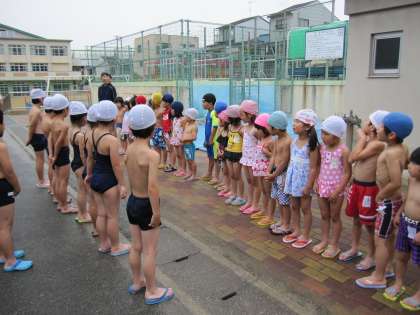 6月12日深草幼稚園のそら組と2年生がプール交流をしました。