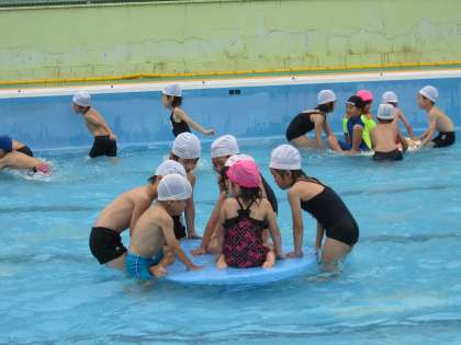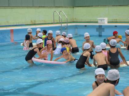プールでは,歩いたり走ったり大きいビート版で遊んだりして楽しく過ごしました。