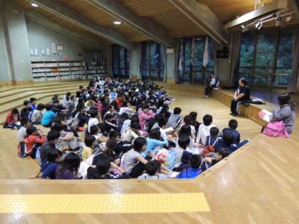 オリエンテーションホールで行った「今日の振り返り」では、竹箸作りのことを話す子どもたちが多くいました。