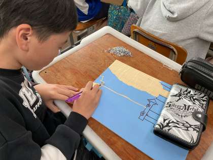 彫刻刀で彫っていくことも終盤に入り、完成して刷る子たちも出てきました。刷り上がりを見て、満足げな子どもたちでした。