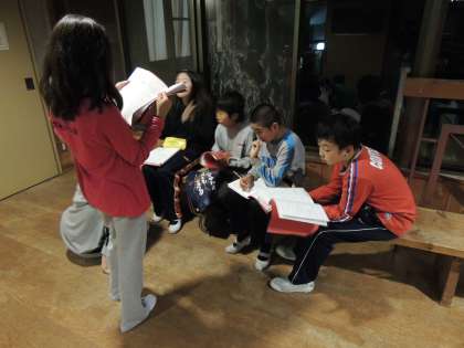 班長会議で話し合ったことを伝達した後,明日の活動や生活で頑張ることについて話し合いました。