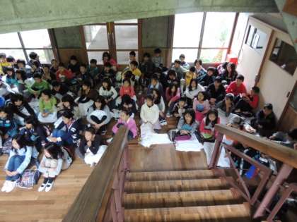 今朝の朝のつどいは宿泊棟で行いました。