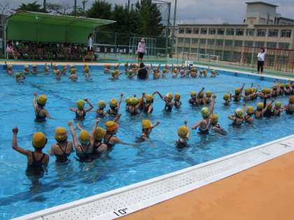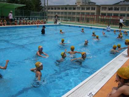 今日は,やっと晴れて,楽しくプールに入ることができました。