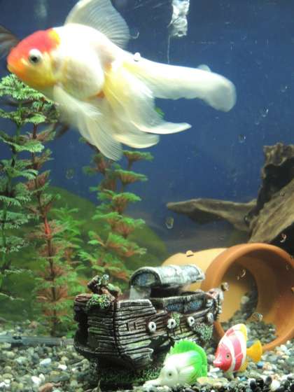 校長室前の水槽には3匹の金魚が泳いでいます。