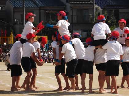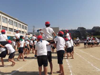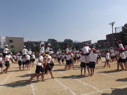 みんな協力して騎馬戦を頑張っています。