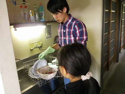 食器を熱湯消毒したり食材を受け取ったりしました。