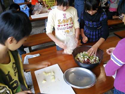 食材もほぼ切り終わり、いよいよ火にかけます。