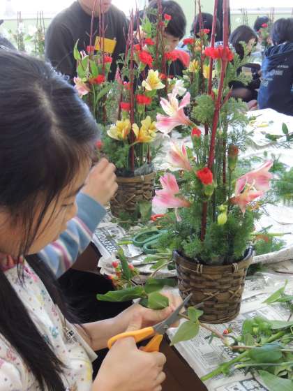 今日は「花育」の方々にお越しいただき,5年生がフラワーアレンジメントに挑戦しました。