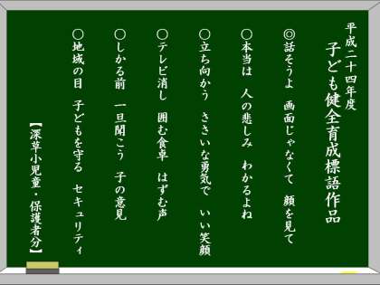 深草地域生徒指導連絡協議会主催「平成24年度子ども健全育成標語作品」に多数の児童や保護者の皆様,地域の皆様のご応募をいただき誠にありがとうございました。