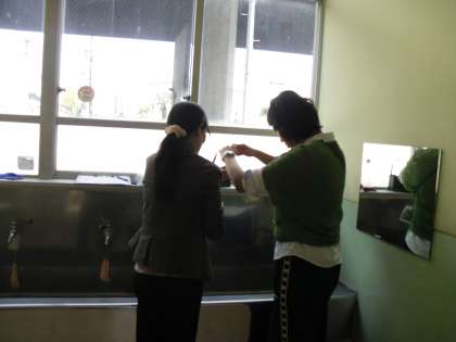 子どもたちがのどを潤す水道水の水質が安全かどうかについて,細かなチェックをしていただきます。また,養護教諭は毎朝,水質検査をして安全を確かめています。