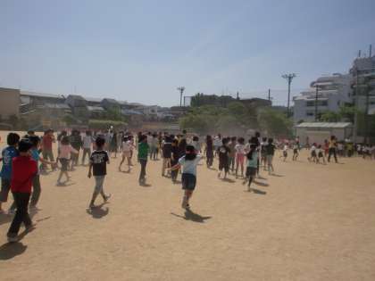 火災発生時に起こる危険から身を守る方法を知らせ,正しい避難の仕方を身につけるようにするため,避難訓練をしました。『お・は・し・も・て』おさない・はしらない・しゃべらない・もどらない・ていがくねんゆうせんの約束を守って,静かにすばやく避難しました。校長先生からのお話もしっかり聴けました。