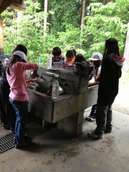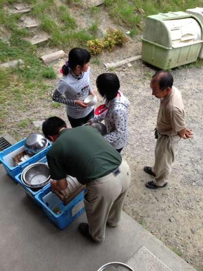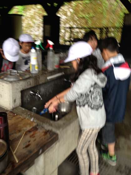 食べたあとは、後片付けです。みんなで協力してできました。厳しいチェックもクリアしました。