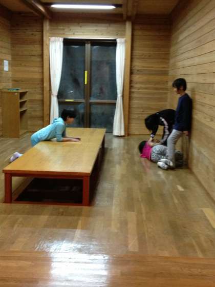 お風呂に入って、一日の疲れをとりました。その後は、リラックスタイム。探検したり、しゃべったり、とても楽しそうです。