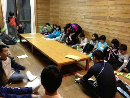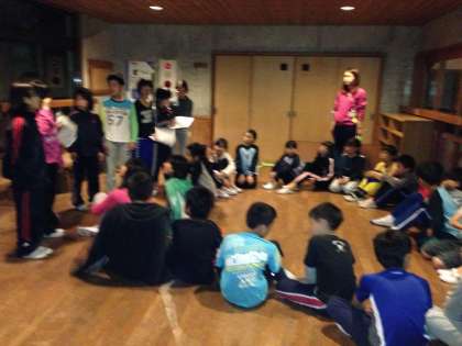 一日の、振り返りと、キャンプファイヤーの練習をクラスごとにしました。どんな出し物がでるか楽しみです。
