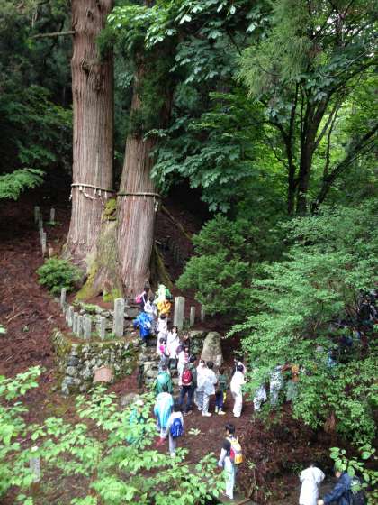 三本杉に到着。樹齢 千二百年という三本杉。その堂々とした姿に感動しました。