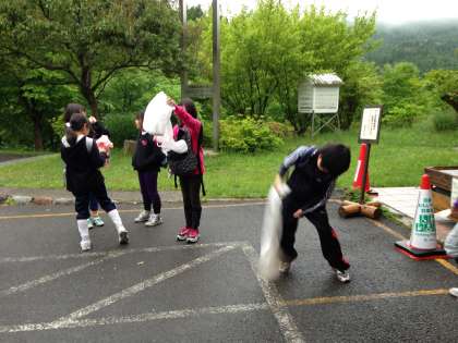 自然を満喫して、帰ってきましたが、ヒルがついていないかチェックした後、まだ念入りに服を払って館内に入ります。