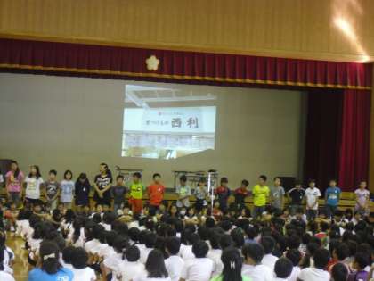 5年生のふかくさタイムです。5年生は,スチューデントシティの仕事体験のことについて発表しました。それぞれの会社に分かれて実際に企業の人に仕事を教えていただいたこと,仕事の大変さや厳しさまた楽しさを学ぶことができました。発表とともに,その様子を劇で再現しました。6年生は,去年のことを思い出しながら,1〜4年は,どんなことをしたのか興味をもちながら5年生の発表を静かに聴いていました。