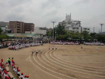 スタートダッシュ! コーナーを回って転んでもゴールをめざして精一杯走ります。