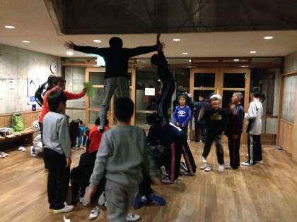 天体観測ができないので、キャンプファイヤーの練習をしました。