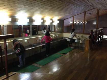 二日目の朝です。みんな5時ごろから起きてゴソゴソしていました。少し眠そうな顔をしています。昨夜からの雨もすっかり上がり、いい天気です。霧が出ていて、雲取山は、頂上だけ見えます。