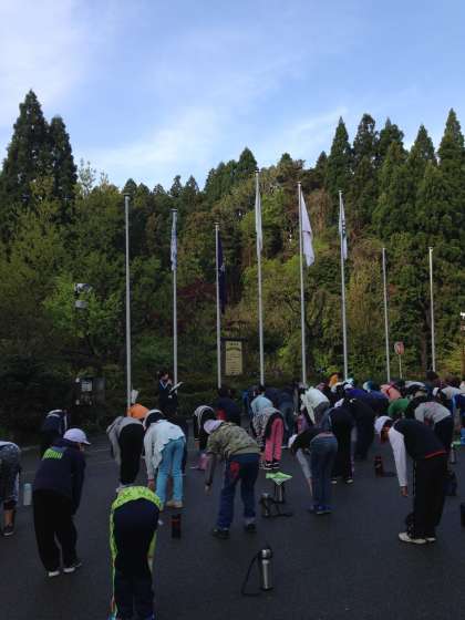 朝のつどいは、ドラエモンの体操からはじまりました。今日は、魚つかみ、スコアオリエンテーリング、ナイトハイクと盛りだくさんです。