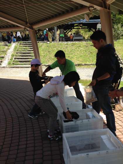 食事が終わりました。来た時よりも美しく!後片付けも頑張っています。