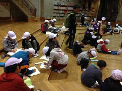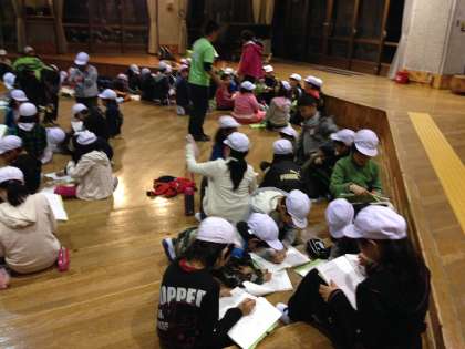 振り返りをしています。これから、順番にナイトハイクに出発します。