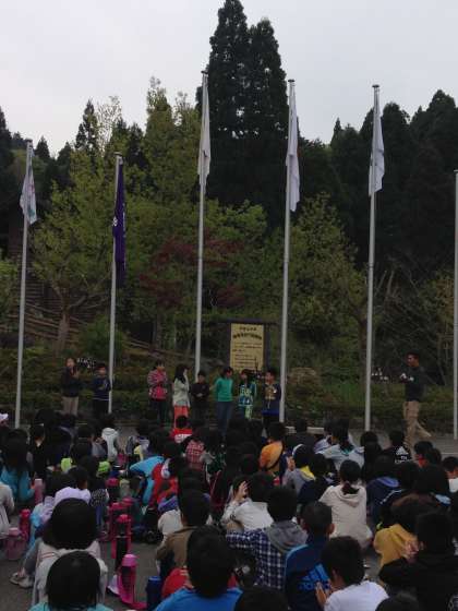 学校紹介をしました。143年の歴史や大文字駅伝や地域のことを紹介しました。